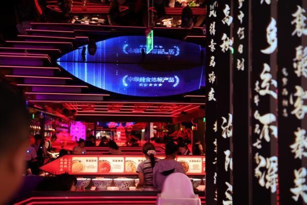 在西安市小寨赛格店,传统国风与赛博朋克的碰撞更显创意。红墙灰瓦的布景外包裹着流光溢彩的灯带,古风灯笼与霓虹招牌交相辉映,服务员的“李白”服饰上还别着发光配饰。烤盘中央,大雁塔造型的陶瓷摆件稳居C位,周围环绕着鲜切谷饲雪花牛板腱、安格斯极品牛肋条、深海大虾等食材,搭配时令蔬菜拼出“曲江流饮”“灞柳风雪”等“长安八景”图案。7月16日,刚消费完“锦绣芳华”套餐的王耀云举着手机边拍边说:“在抖音上刷到推荐时就很期待,到店发现比视频里还惊艳,烤肉好吃不说,随便一个角落都能拍出古风大片。”