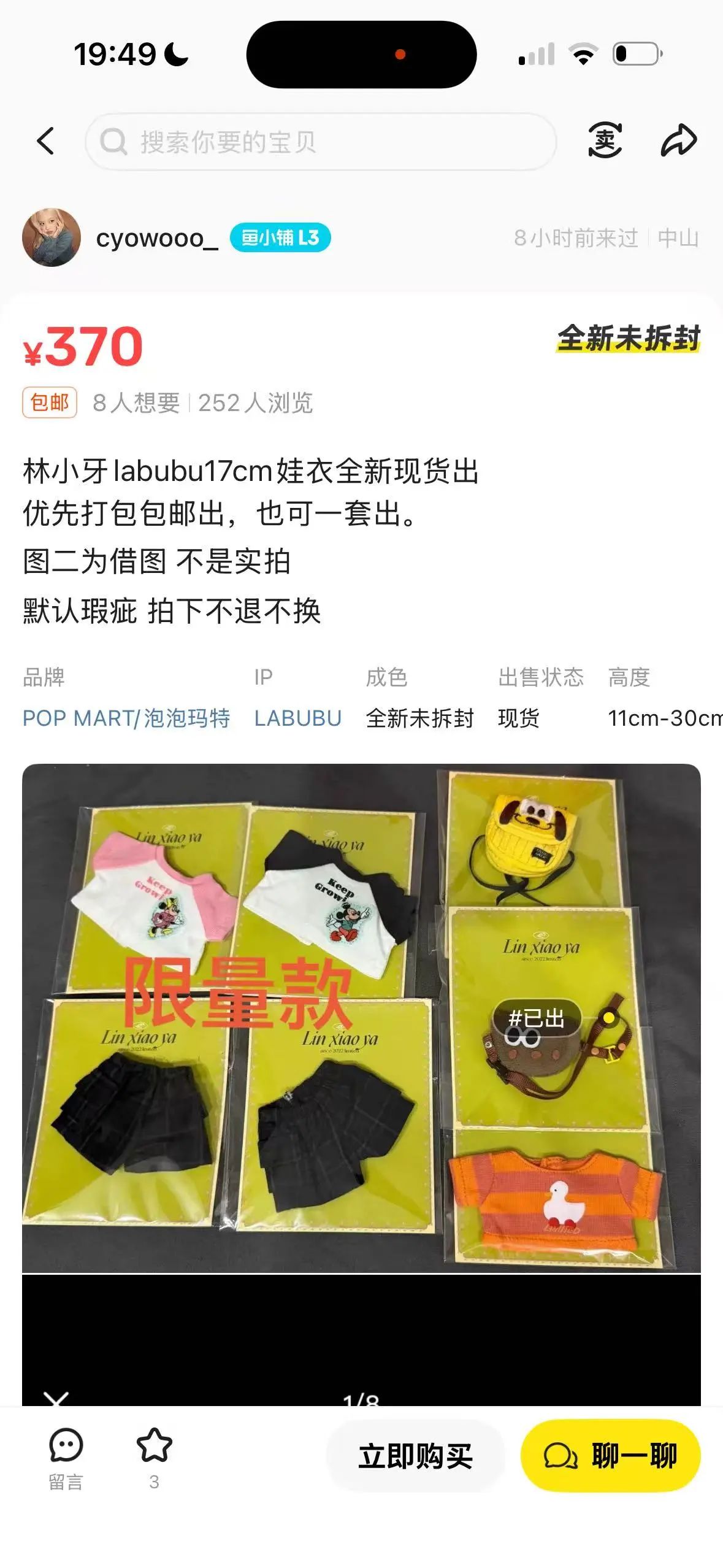 “原价是买不到Labubu的,你花大几百在平台上抢到了二手盲盒,带着‘娃’出去的时候发现别人家的‘娃’都有衣服穿,肯定自己也想下单一件。”潮玩爱好者周雨告诉记者。