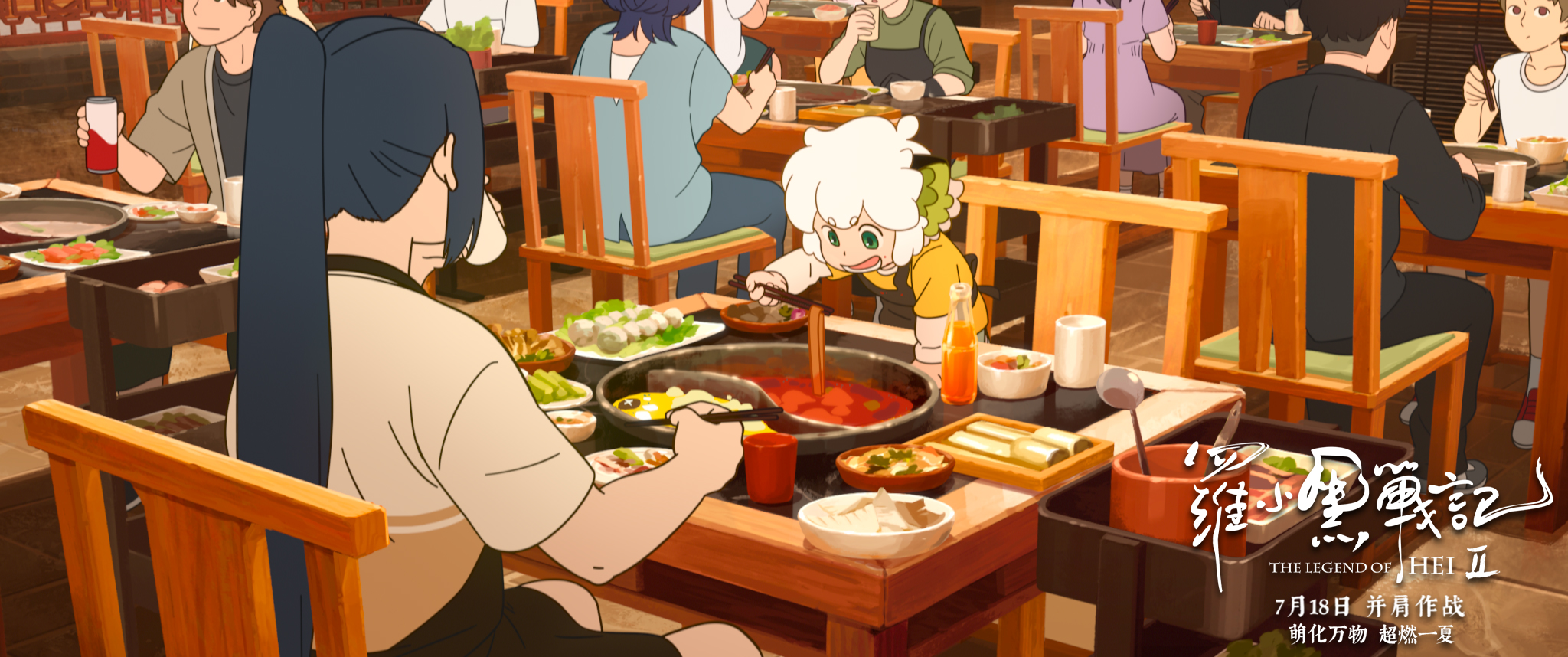 曹紫建:其实不光是动作设计,每个细节我们都希望用这种精益求精的程度去做。电影有个小黑和师姐去吃火锅的镜头,细节细到什么程度呢?涮火锅时,苕皮滑下去,宽粉滑下去的样子,都要去火锅现场观察,大家讨论这些食材滑下来是怎样的,还会捡起来拍下来,再根据它们掉落的节奏去画。