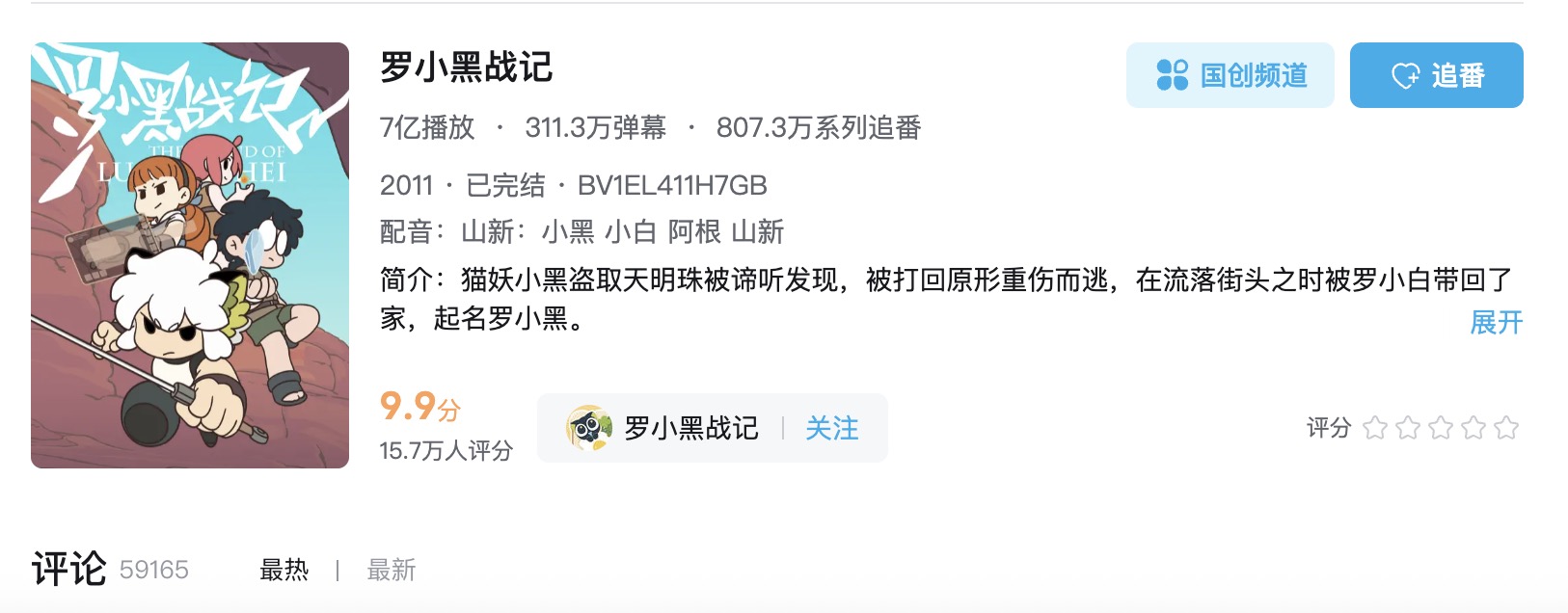 罗小黑诞生于2011年,是导演木头创作的番剧《罗小黑战记》中的主角。番剧的一集是5分钟,常处于“年更”状态,在国动的蛮荒时代,这部低成本的治愈系动画获得了9.5的豆瓣高分。