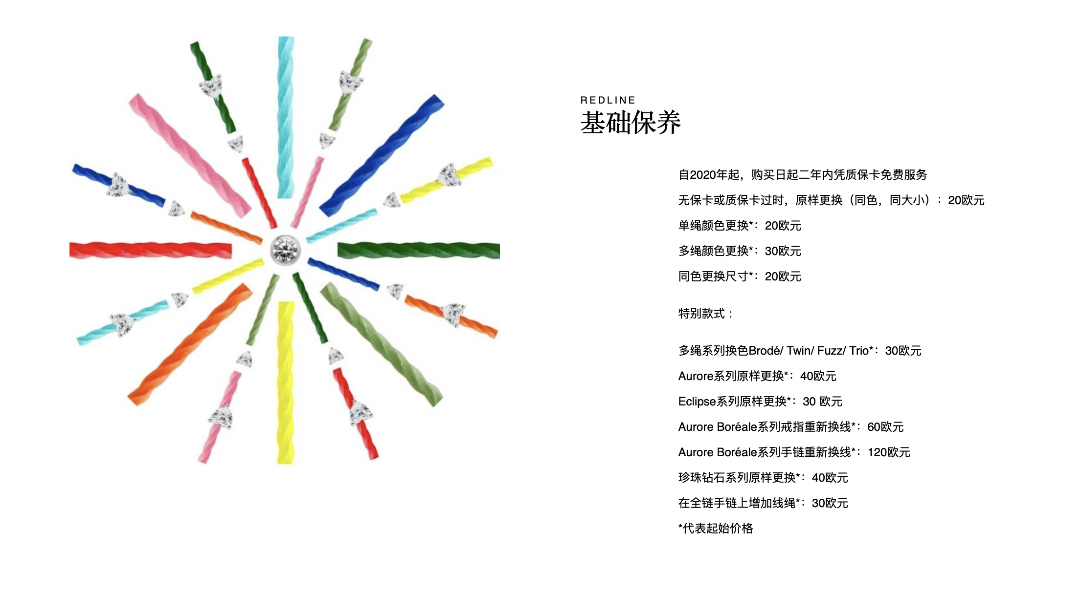 但根据Redline全球官网,消费者在无保卡或质保卡过期之时申请产品售后维护,若想更换同款、同大小的Redline编绳,官方收费为20欧元(约合人民币166.8元)。