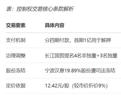 对比两次交易,两家国资给出的价格均为 12.42 元/股,只有个别定价细节略有不同。因此,“谁出价高”并不是宁波汉意改嫁武汉国资的理由。