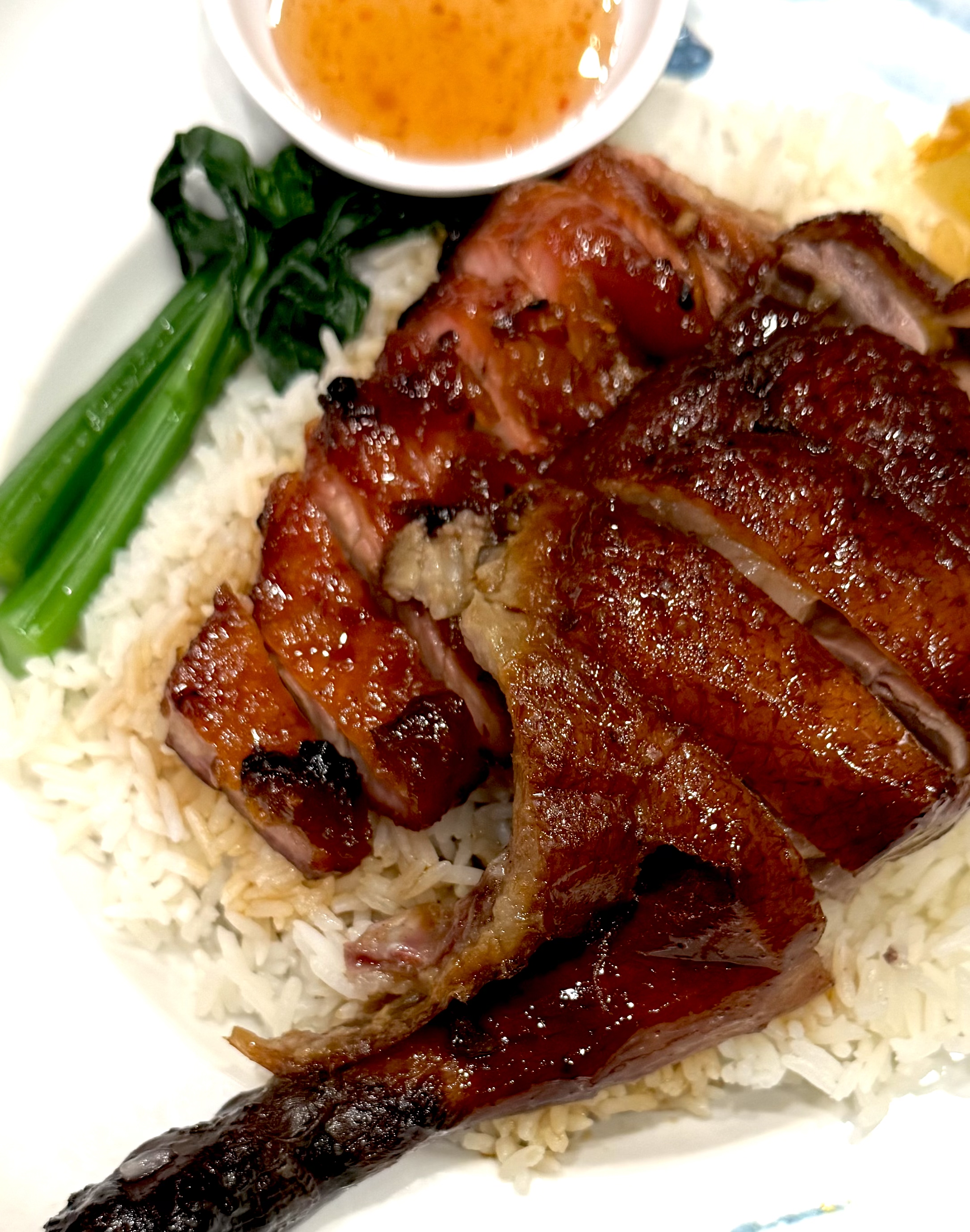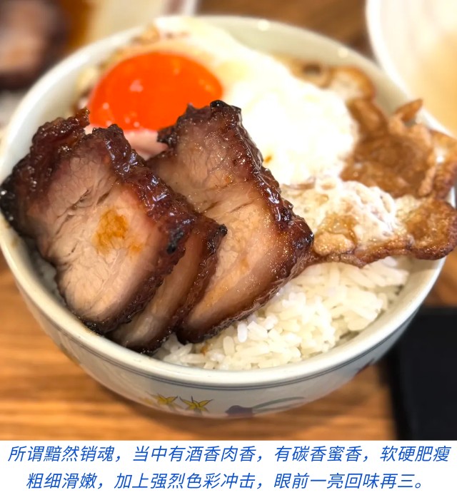 从「好好运」到「顺景」到「利隆」,再一次确认香港的茶餐厅大排档取名从来都是那么简单直接,那么good will,充满良好愿望。也有更更明目张胆的最近十分火爆的一家港式烧腊专门店,直接就叫做「发达叉烧」,无论是店家自己先发达还是让顾客吃了都纷纷发达起来,反正就是恭喜发财的初心本意。那天刚巧在湾仔开会我还特意在正午12时开铺前赶去「发达叉烧」门口排长龙,成为第一批进店的食客、点了招牌的煎双蛋半肥瘦叉烧饭,加了一条鲜鹅肝润肠,白饭也加了10块钱改成了猪油捞饭—— 这种我们称作「烧腊铺」的店,近年不断更新迭代,竞争白热化,与粥粉面店,茶餐厅,大排档齐上齐落,依然是香港庶民日常饮食的基本内容和深层结构。