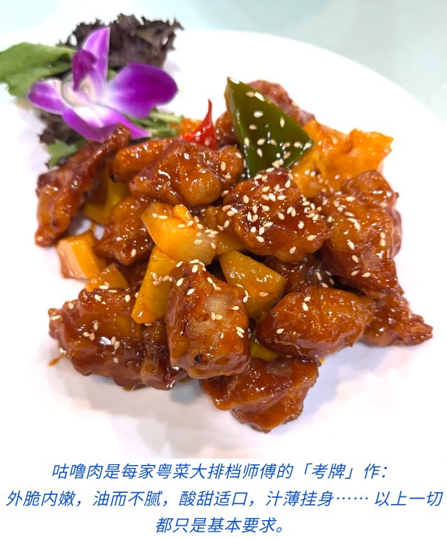 有别于「好好运」是本地人昵称「茶记」的茶餐厅基本款,这间叫做「翠豪园」的实际已经是具备大排档的「魂」,提供完整的粤菜小炒以至海鲜菜式。通常我两人「撑枱脚」晚餐,以至招朋唤友七八人,点的菜是蒸一条马友鱼或三刀,椒盐酥炸九肚鱼或者鲜鱿,鲜肉做的咕噜肉和用雪藏肉做的价钱不一样,明显好吃很多。下饭菜土鱿蒸肉饼还不错,三色蒸水蛋都嫌鸡蛋蒸得不够滑嫩,豉椒排骨配煎米粉,米粉略嫌太油,换了干烧伊面有我最喜爱的草菇倒是很出色——