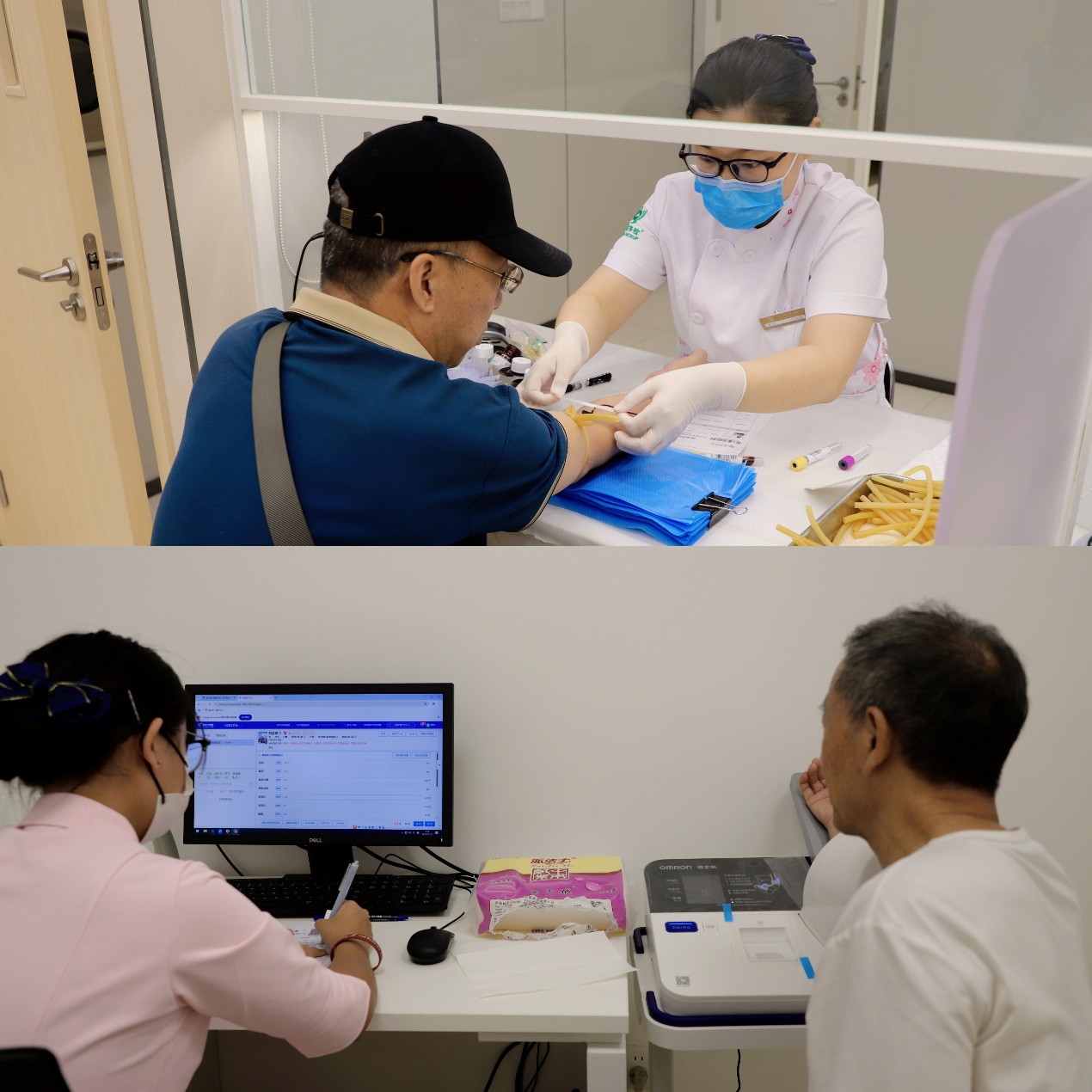 ▲护士为老兵采血、测骨密度
