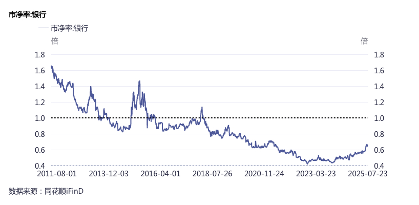 例如今年1月盈投控股以每股7.46元转让广发银行股份,转让价格仅相当于广发银行2024年末每股净资产的65%(即市净率0.65倍)。不过,该交易因涉及股权质押,价格可能被低估。