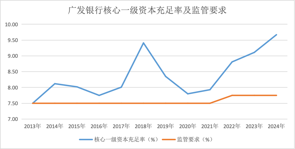 由于迟迟未能上市,广发银行多个年份资本充足率低于行业平均水平,且离监管底线较近。广发银行不得不通过定增补充资本,中国人寿均参与定增,持股比例一直保持在43.68%。