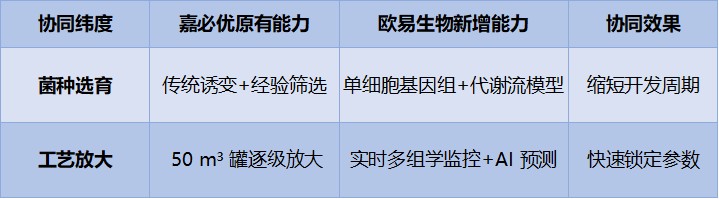 嘉必优表示:“欧易生物的多组学平台可缩短嘉必优菌种改造、工艺放大的试错周期”。例如,欧易生物的生物信息数据库和生物数据分析能力,有助于挖掘和分析微生物代谢路径,帮助嘉必优在新菌种设计构建方面,找到“吃饭少、干活多”的菌种。