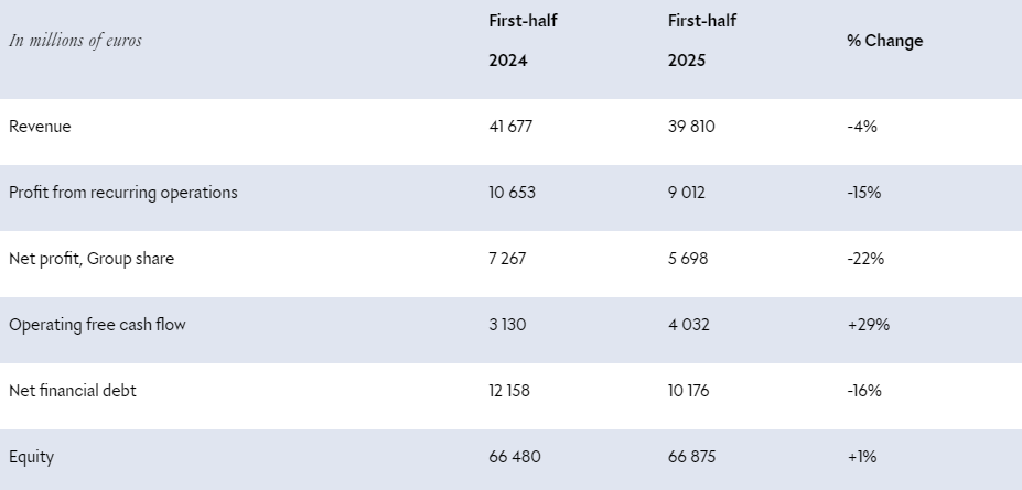 数据显示,2025年上半年出现营收利润双降,收入下跌4%至398.1亿欧元(约合人民币3352.16亿元),在有机基础上同比下降3%;经常性营业利润同比下降15%至90.12亿欧元(约合人民币758.97亿元);净利润为56.9亿欧元(约合人民币479.26亿元),大跌22%。