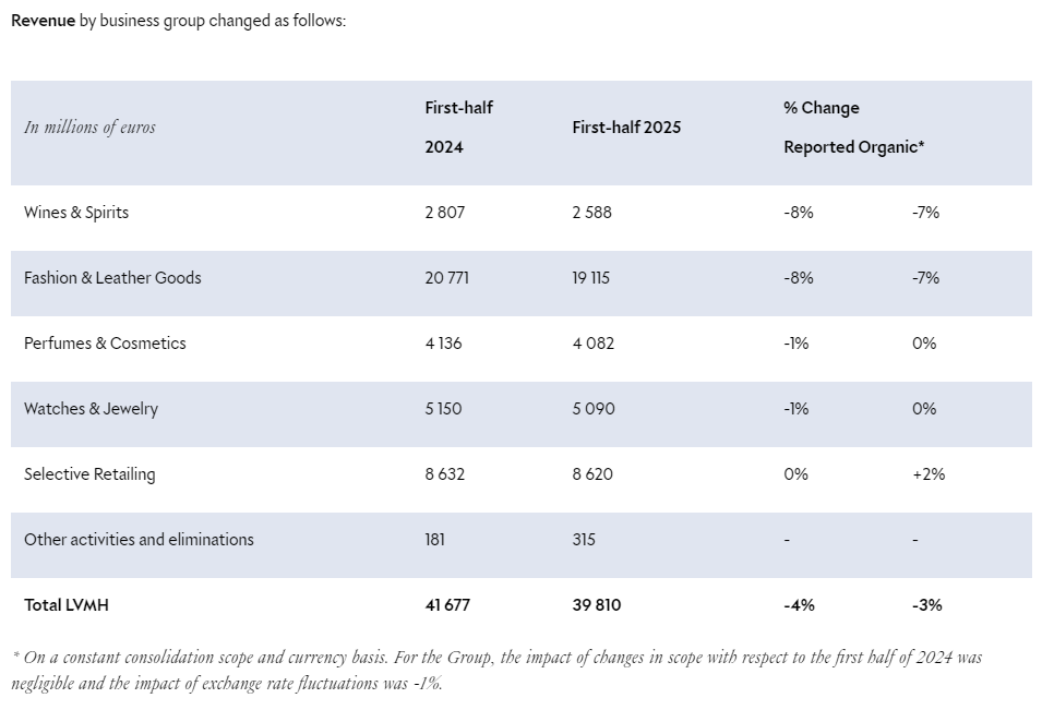 香水和化妆品业务在2025年上半年保持稳定,保持了其强劲的创新政策和高度选择性的零售方式。