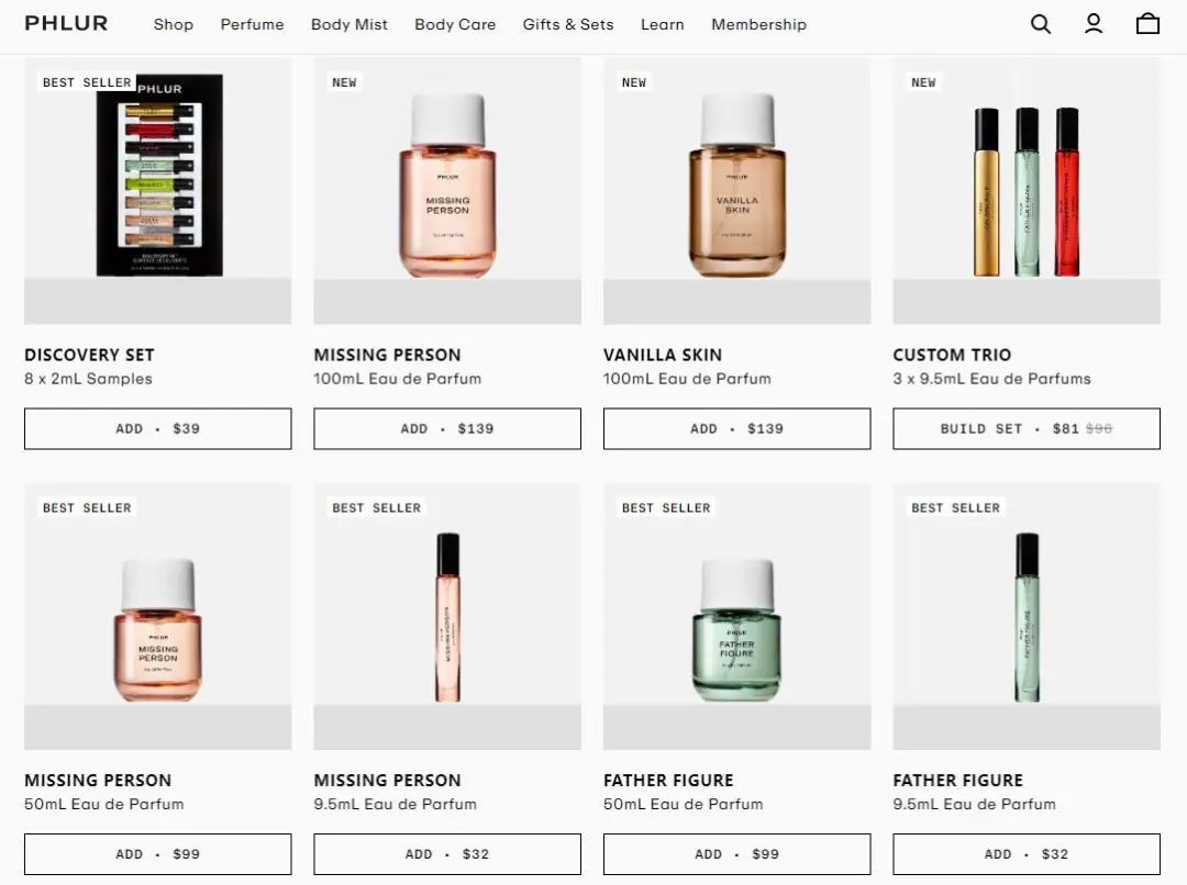 2015年,Phlur由Ralph Lauren前全球电商总裁Eric Korman在奥斯汀创立。其最初定位为互联网直销香水品牌,主营产品集中在“清洁香水”及其延伸品类,采用DTC模式,主打环保中性香水和家庭试用体验。