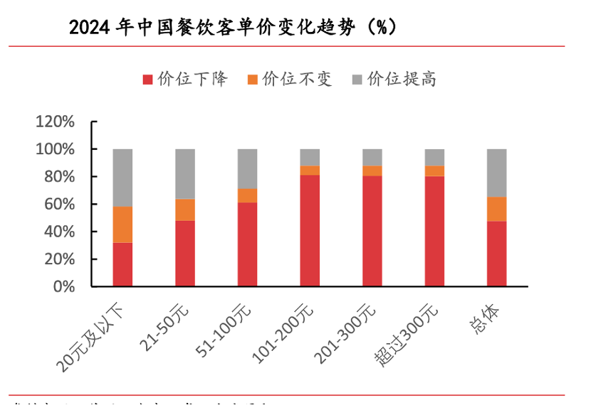 根据麦高证券数据,2024年客单价20元以上餐饮店半数以上都在打价格战(这也是连锁餐饮的重点价位),2025年行业增速的大幅下滑,从业者多在“破防”边缘。