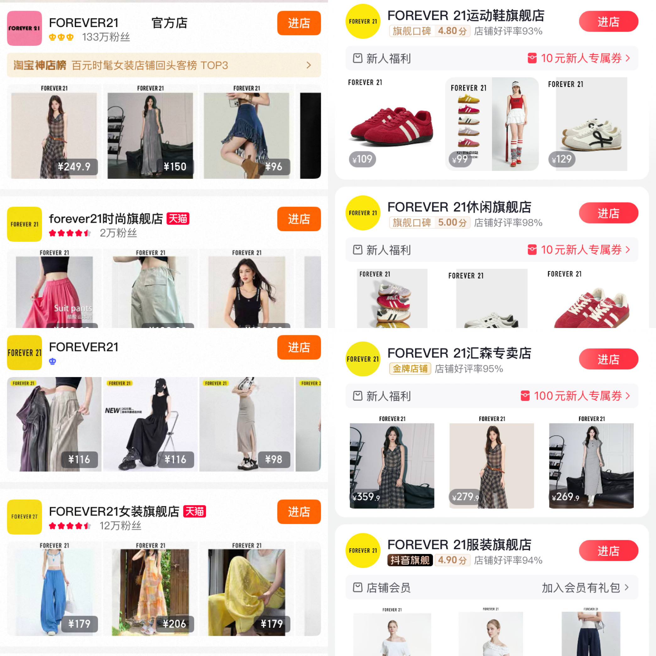 何况,如今在抖音、淘宝等电商平台上还有多家打着Forever 21名号但资质不明的网店仍在经营,这也干扰了Forever 21的品牌形象。界面新闻通过邮件询问ABG这些网店是否获得Forever 21品牌授权,以及如何处理上一任合作伙伴的遗留业务,截至发稿未获回复。