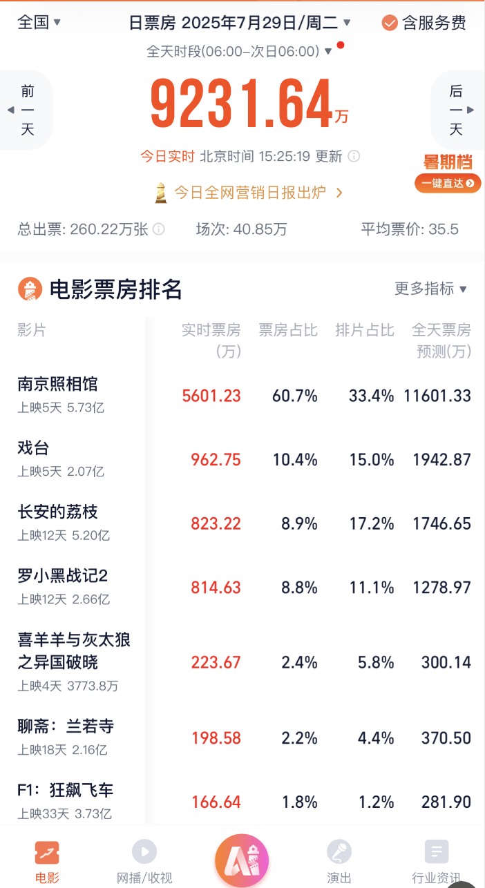 从7月25日这个周末开始,暑期档的命运似乎迎来了转折点。《南京照相馆》《戏台》两部新片双双发力,再加上《长安的荔枝》《罗小黑战记2》等影片热度延续,迟迟未“升温”的暑期档,终于迎来了它的拐点。