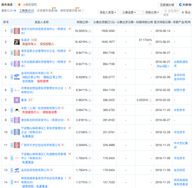 另据天眼查App信息显示,淮安天绘持有蓝箭航天19.3935%股份;张昌武持股16.4019%(间接持股27.1734%);淮安蓝箭企业管理合伙企业(有限合伙)持股8.9471%。