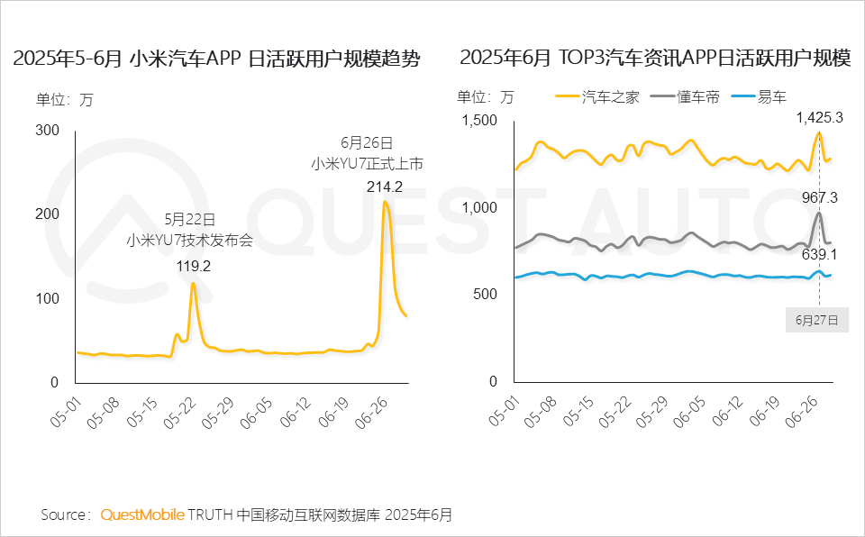 2.1 小米YU7发布引发市场强烈关注,小米汽车APP日活创新高,同时带动汽车资讯APP流量的显著提升