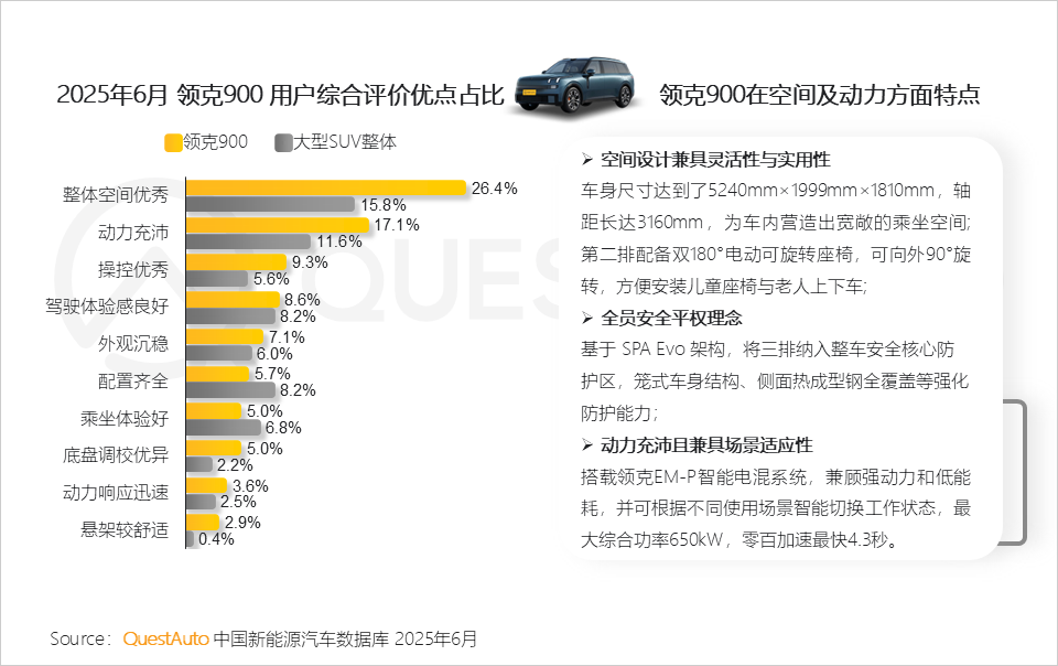 2.5 领克900以宽敞空间和强劲动力获用户更多好评,且突出的安全性能进一步增强驾驶体验和安全感