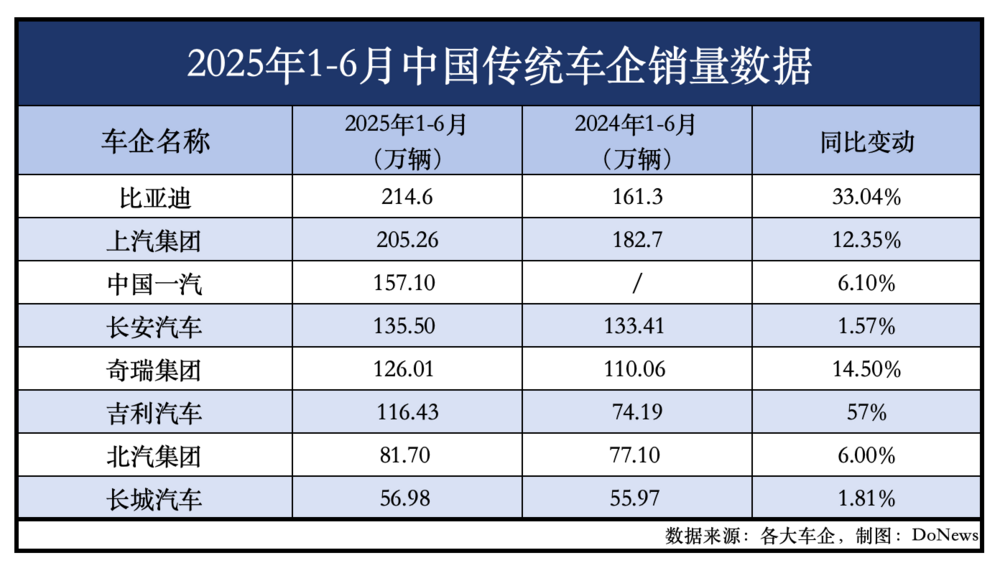 2025年1-6月,长安汽车实现销量135.5万辆,其中,自主品牌实现销量115.1万辆,占比接近85%,俨然已成为自主品牌中的重要代表,或许这也是其能免于与东风重组的重要原因。