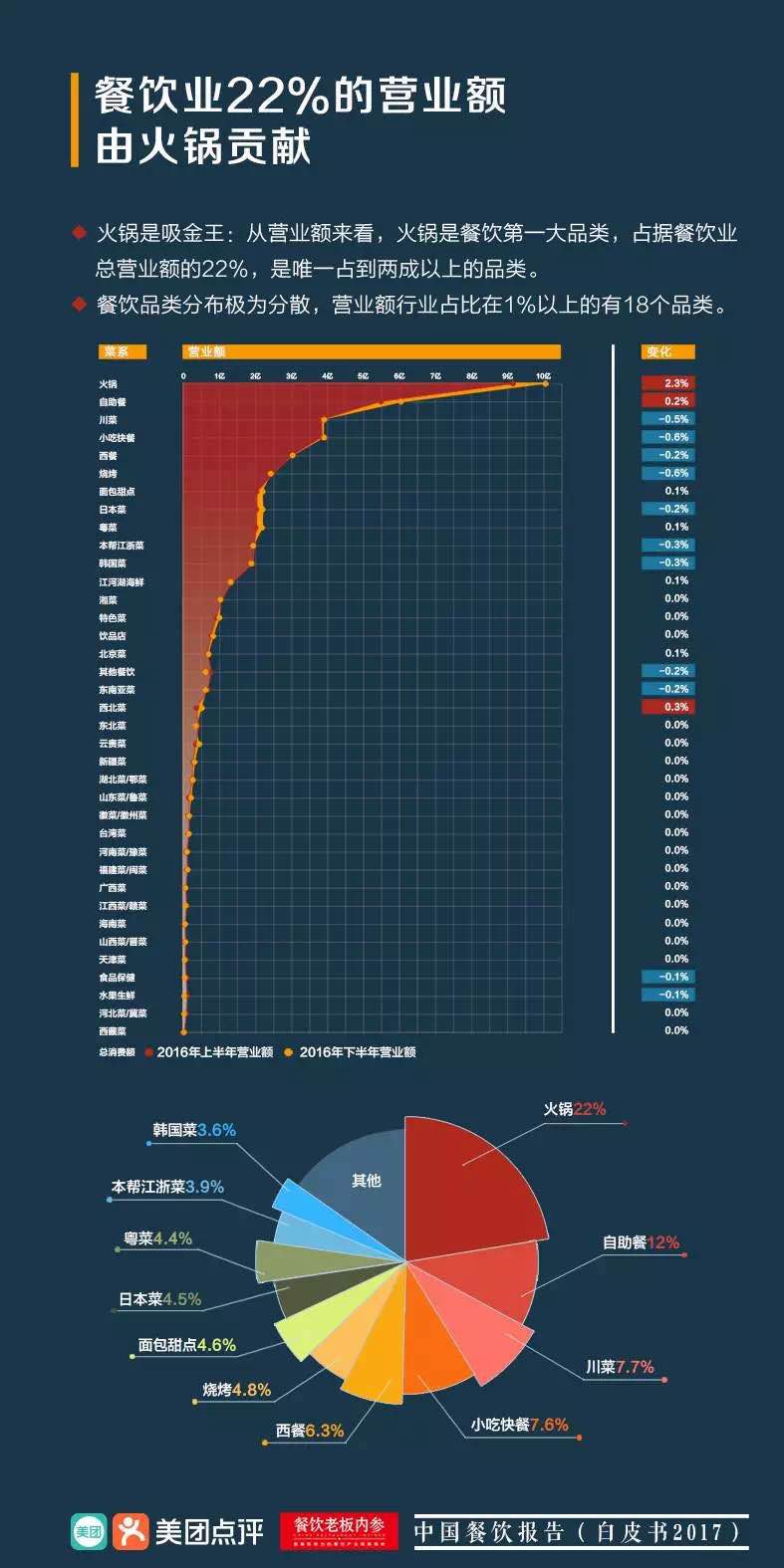 最近,美团点评研究院联合餐饮类微信自媒体餐饮老板内参推出了《中国餐饮报告(白皮书2017)》,该报告显示,从行业规模上看,餐饮收入从2012年的2.3万亿发展到2016年的3.5万亿。2016年中国餐饮行业同比增长11.3%,高于零售、快消等多个传统行业。