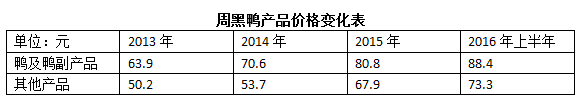 周黑鸭上市招股书显示,从2013年至2016年上半年,周黑鸭的平均售价一直在涨。
