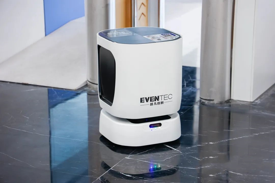 清晨的成都世运村,一台配送机器人“路宝”游弋于人流间,它灵活地绕过花坛,穿过自动开启的玻璃门,稳稳停在电梯前,此刻正通过云端调度系统排队等待进入电梯,并自动调整方向为人类让出空间。