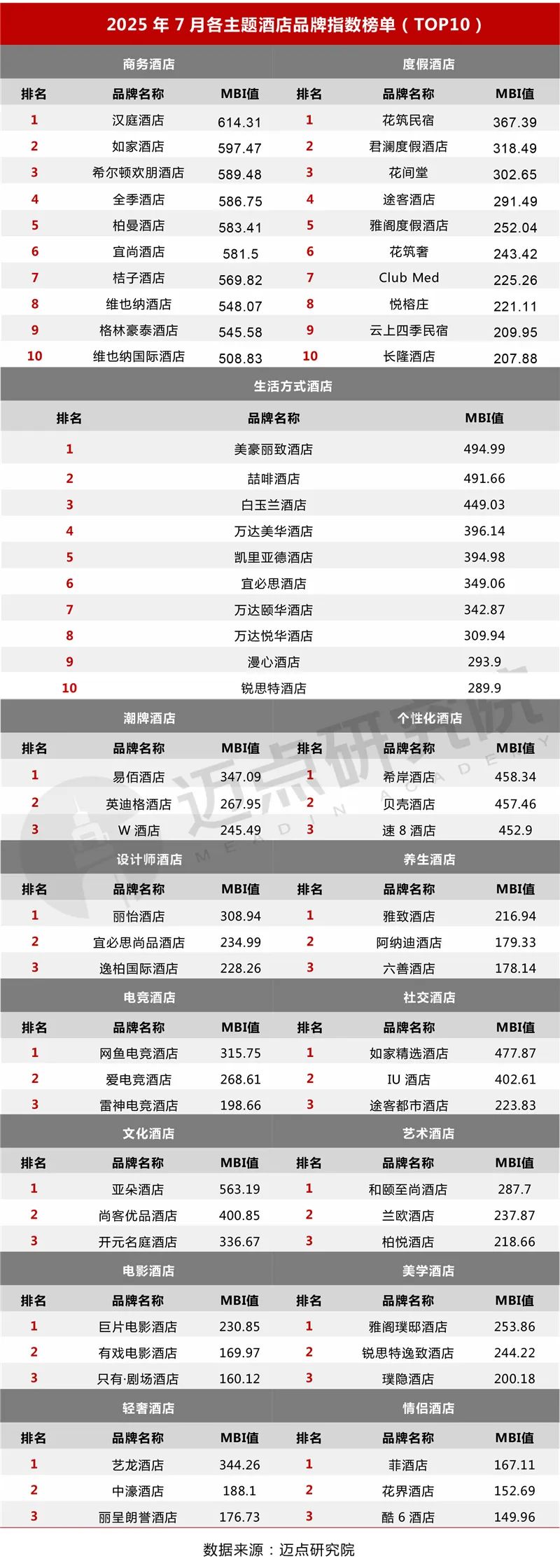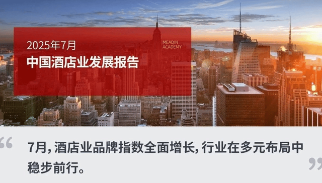 2025年7月,中国酒店业在动态调整中展现多元发展态势。市场活跃度持续提升,高管履新频繁为行业注入新动能,新开业酒店达246 家、签约项目141家,供给端保持充足活力;各类型酒店品牌指数均值普遍呈正向增长。虽部分国际酒店品牌经营指标同比下滑、区域品牌指数呈现分化,但行业整体在品质化升级与精细化运营中稳步前行,呈现出活力与挑战并存的发展特点。