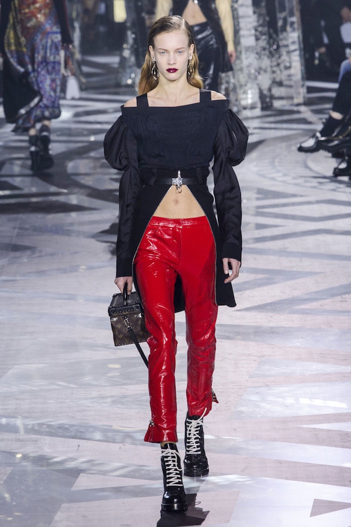 在谈及透明塑料材料的使用时,Riach就提到Louis Vuitton以及Sandro等品牌都有使用PVC塑料面料做裤子的先例。至于纱裙牛仔裤,则是将街拍中已非常流行的博纱裙与牛仔裤做了简单粗暴的拼接,而且还带着点“1990年代的复古味”。