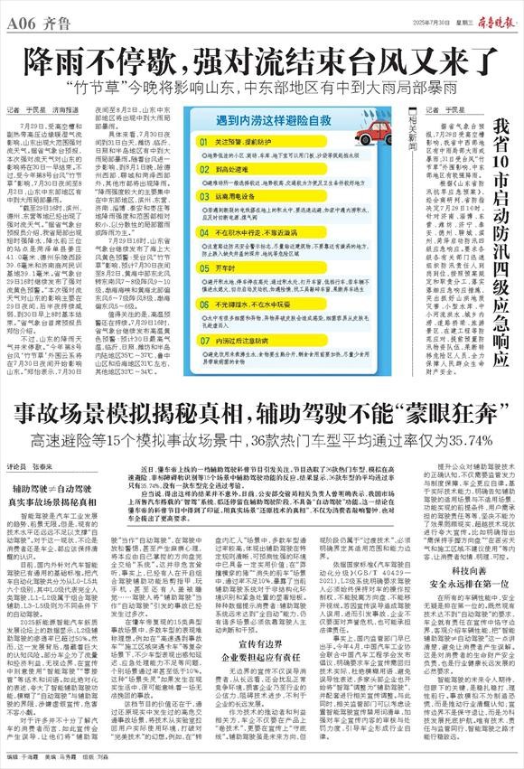 为明确辅助驾驶边界,科普辅助驾驶的正确使用方法,懂车帝于近期上线了一档辅助驾驶科普节目。节目选取了36款热门车型,模拟在高速避险、非标障碍物识别等15个场景中辅助驾驶功能的反应。结果显示,36款车型的平均通过率只有35.74%,没有一款车型完全通过考验。节目上线后引起了广泛讨论。对此,齐鲁晚报发表评论员文章《事故场景模拟揭秘真相,辅助驾驶不能“蒙眼狂奔”》,认为该节目用真实场景“还原技术的真相”,不仅为消费者敲响警钟,也对车企提出了更高要求。