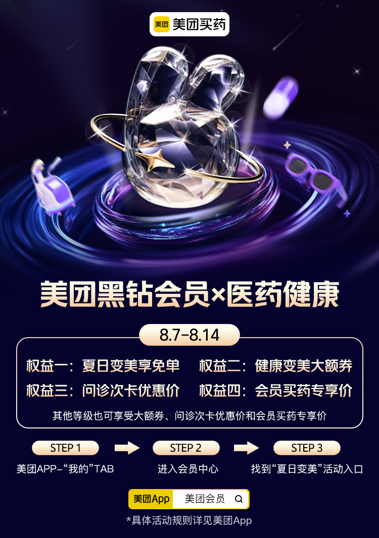 8月7日,美团会员服务迎来全新升级,将医药健康服务全面纳入会员核心权益范围。针对用户在夏季广泛的变美变健康需求,美团会员权益范围拓展至医美、问诊、口眼、美容、买药等服务,实现了大健康权益的全覆盖。