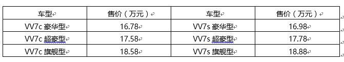 VV7c/VV7s是中国第一个豪华SUV品牌的第一款车,定位“轻奢、动感”,售价16.78万-18.88万元,在材质、技术、安全保障和造车理念等方面均以豪华SUV为标准。