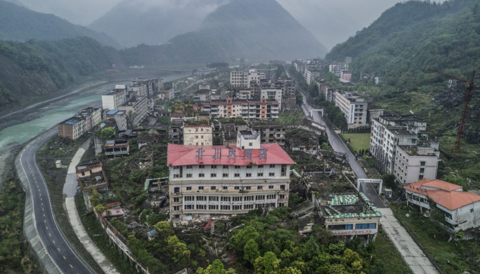 17. 2017年4月24日,四川汶川地震遗址。 北川老县城在经历了08年大地震后,还在2013年遭遇过一次严重的洪涝灾害,如今成为了地震遗址,供全国各地民众前来凭吊。
