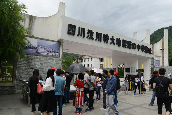 13. 2017年5月11日,四川阿坝,人们在震中映秀镇漩口中学遗址参观凭吊。