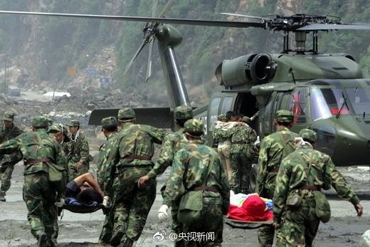 5. 救援现场。根据事后披露数据,汶川大地震共有14万解放军投入救灾。