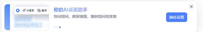 但夸克是拥有类似360的悬浮球和工具栏的功能的。在其他APP中,夸克的AI搜索、翻译、AI写作等功能也是可以调用的——这就是质变了,这意味着夸克可以跳出浏览器,成为一台电脑的AI助手。一台电脑只要安装上夸克PC版,整台电脑都可以变成“夸克版AIPC”。