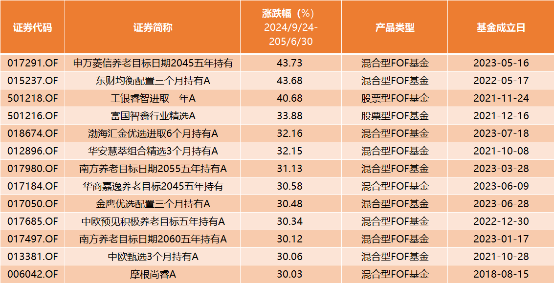 具体到基金层面,wind数据显示,上述统计区间,已成立的470只FOF基金(剔除已清盘基金)全部取得正收益,其中87只基金收益超过20%。