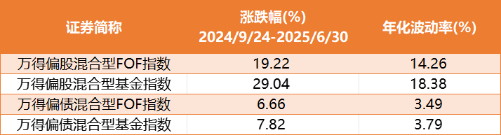 界面新闻统计发现,自去年“9·24”行情以来,截至今年6月末,FOF指数的涨幅明显好转,偏股混合型FOF指数呈现出“涨幅跟得住、波动更低”,而偏债混合型FOF指数表现出来的抗波动属性则与偏债混合型基金指数不相上下,风险收益比表现不错。