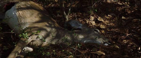 很快这对甜蜜的情侣就踏上了回家之旅,在路上一只忽然撞向汽车的鹿让这次旅程有了一点儿惊悚的味道——