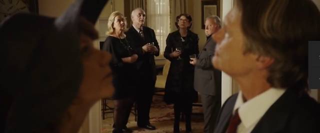 在前面半个小时的时间里,这部电影就一直在营造一种似有若无的惶恐,你明明觉得有什么不对了,在罗斯父母看似善意的目光中,在男仆女仆和顺恭谦的笑容里,但是又似乎抓不住,不过半个小时之后,这个家族逐渐露出了它的本来面目——