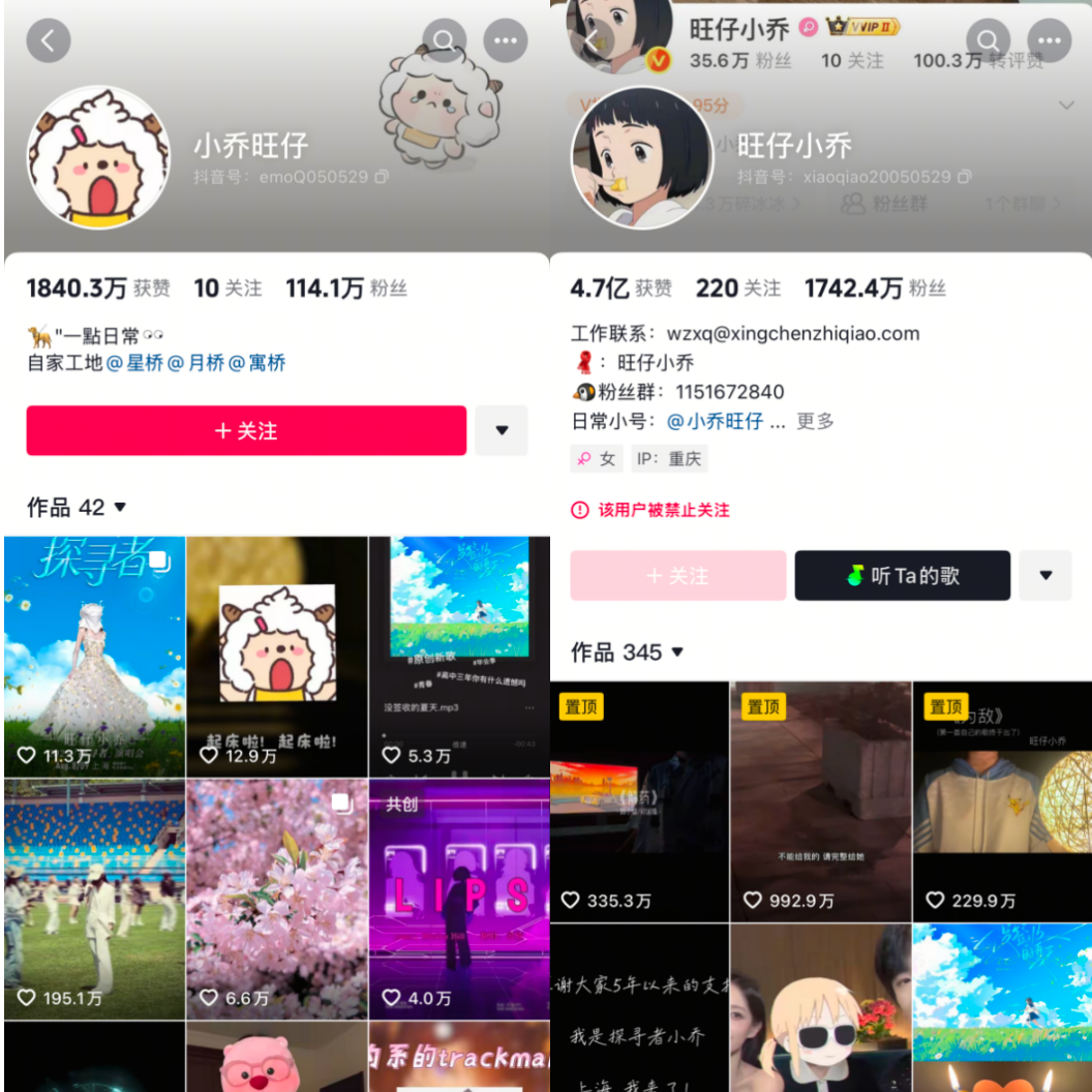 在副业拓展之外,网红们也在不断尝试做小号。“垂类+生活”是比较常见的思路,“旺仔小乔”就有一个分享日常的账号叫“小乔旺仔”。一来能把原账号的核心粉丝引流过去,低成本快速起号;二来,小号可以重新规划价格投放体系,不会对主号价值产生冲击。