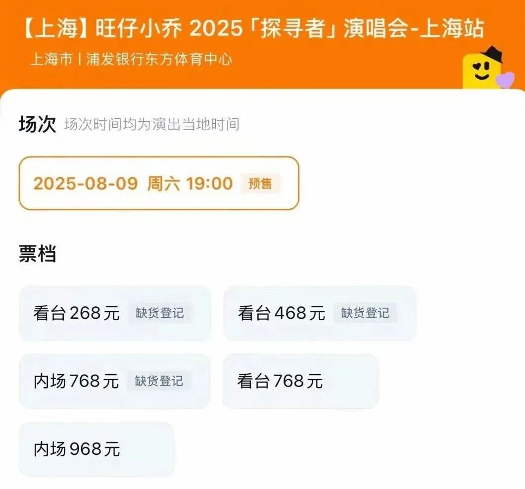 如果采取分成模式,网红的收入大概能占到演唱会总收入的三成,定价太低,赚的钱可能还不如做一场直播,不划算。所以,旺仔小乔的演唱会采取分区定价,看台最低档268元、内场最高档968元。