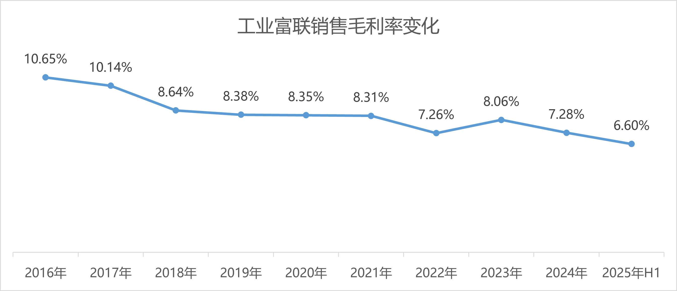 工业富联“薄利多销”特征愈发显著,盈利主要依赖规模效应。尽管中高端产品占比大幅上升,销售毛利率却不升反降。