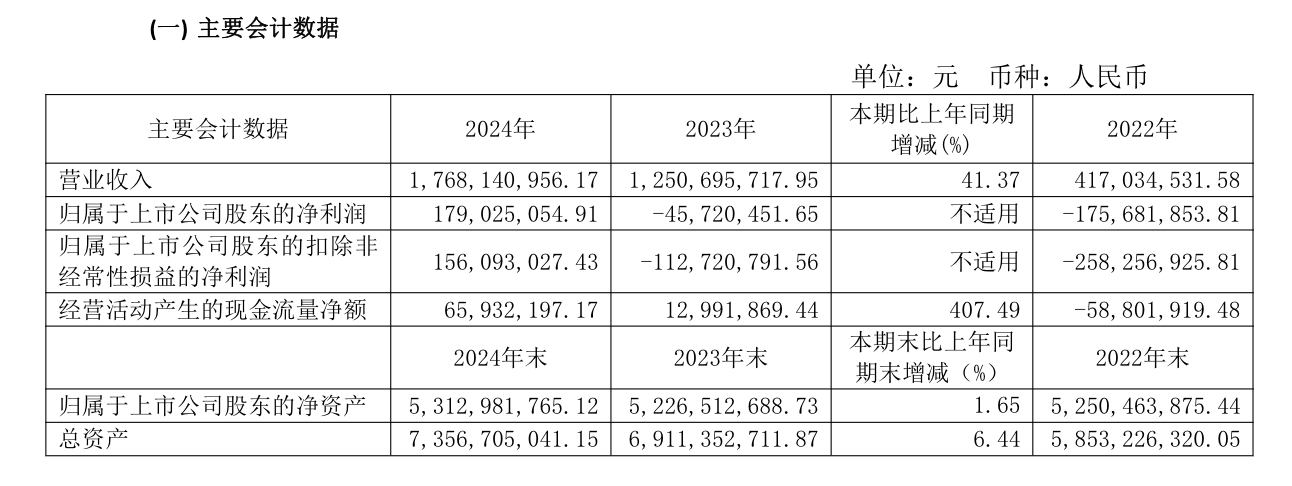 从业绩看,2024年年度报告显示,公司全年营收17.68亿元,同比增长41.37%;净利润1.79亿元,实现扭亏为盈。