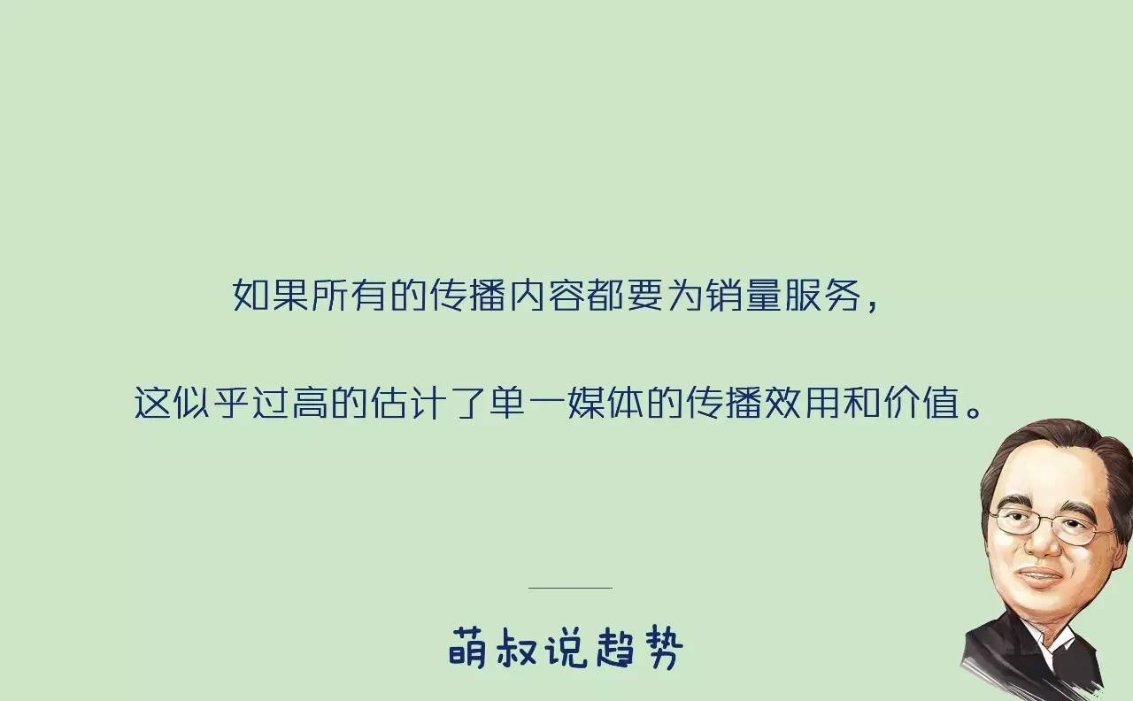 其次,如果所有的传播内容都要为销量服务,这似乎过高的估计了单一媒体的传播效用和价值。比如,对于一个垂直圈层的自媒体而言,更多只是充当了针对某一个圈层消费者的品牌声量放大器和内容传播者的角色,品牌利用自媒体的粉丝扩散力和话题性,可以激发更多人的围观和争议,从而实现数量级的品牌曝光,这才是这个媒体渠道的首要任务,如果说在这个任务基础上还能产生销量,那自然求之不得。然而,是不是每个自媒体都要承担这样的“销售转化率”功能,这需要一分为二的看待,有的自媒体本身就定位为产品销售渠道,有的自媒体就是优质原创内容平台,给受众带来的影响是不一样的。