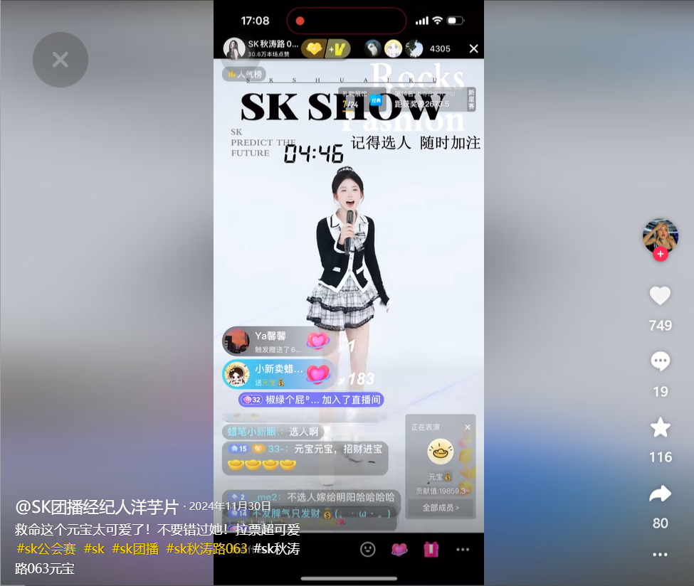 团播拉票切片(图源:抖音@SK团播经纪人洋芋片)
