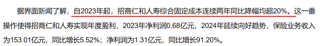 不管如何,招商仁和人寿2023年业绩情况出现好转的一个重要原因是,公司开始在降本增效上猛然发力。