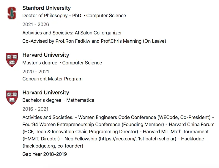 进入哈佛,郭文景先读数学本科,又拿下计算机硕士学位。中间还Gap了一年,去了Facebook AI Research做全职研究工程师。
