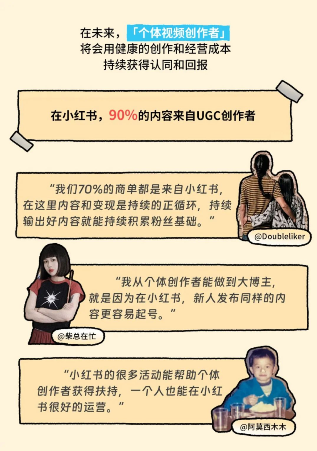 去年小红书对外发布的《2024 创作者趋势报告》,同样强调拥抱“个体视频创作者”,称平台上 90%的内容都来自于 UGC 创作者。今年小红书宣布的焕新品牌 Slogan,从“你的生活指南”变成“你的生活兴趣社区”,都在强调多元化的社区生态。
