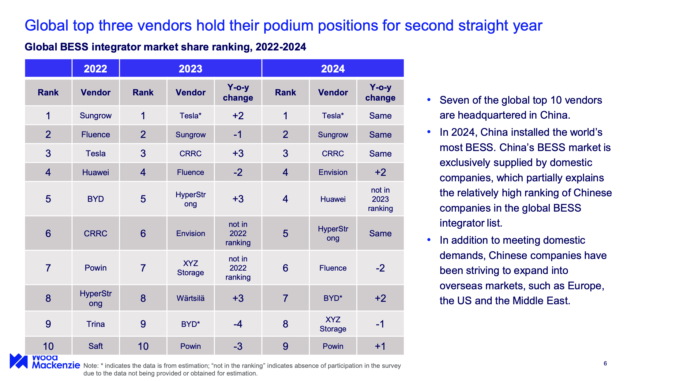 近日,国际咨询公司伍德麦肯兹(Wood Mackenzie)发布了《2025全球储能系统集成商排名》,中企表现吸睛。