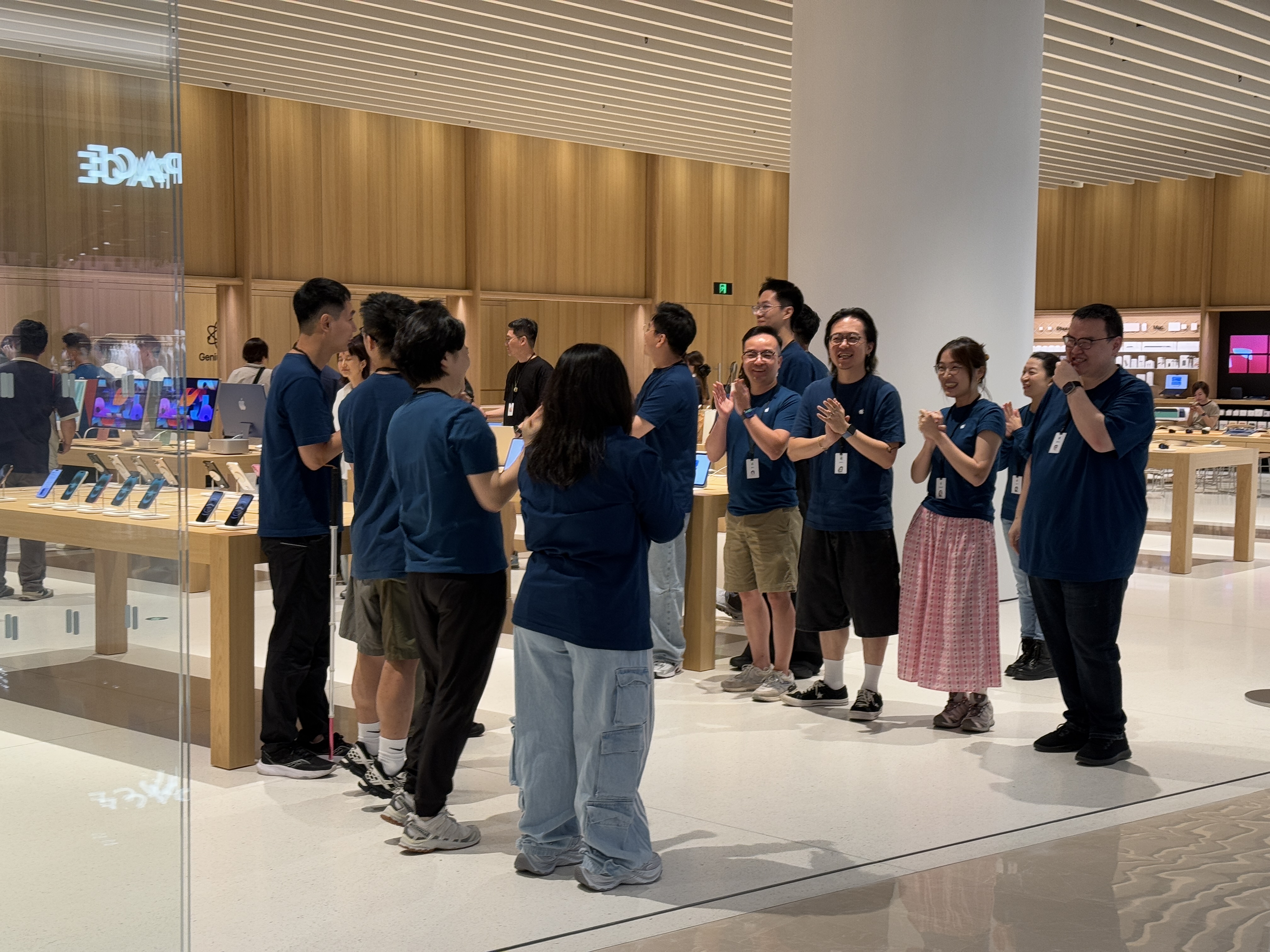 8月14日,在位于深圳宝安区的前海壹方城一楼,苹果中国区零售业务团队正在为新门店开业做最后的准备。两天后的8月16日一早,Apple前海壹方城将正式向消费者开放。