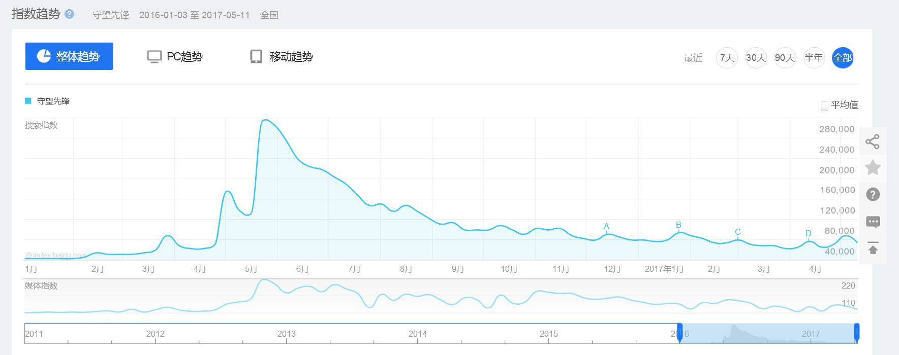 按照百度指数的数据显示,《守望先锋》的搜索量一直在下降,到了今年4月,其搜索指数一度只有2万多。